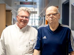 Eine Woche nach der Operation ist Herr Henschel bereits erstaunlich mobil. „Ich hatte einen Tag nach der OP schon fast keine Schmerzen mehr“, sagt er. „Das hätte ich so nicht gedacht.“ Statt langer Einschränkungen kann er früh wieder trinken und essen. Auch das gehört zum Behandlungskonzept der Klinik. „Wir versuchen, Patienten so schnell wie möglich wieder in die Normalität zu bringen“, erklärt Zentrumsleiter Kruschewski.